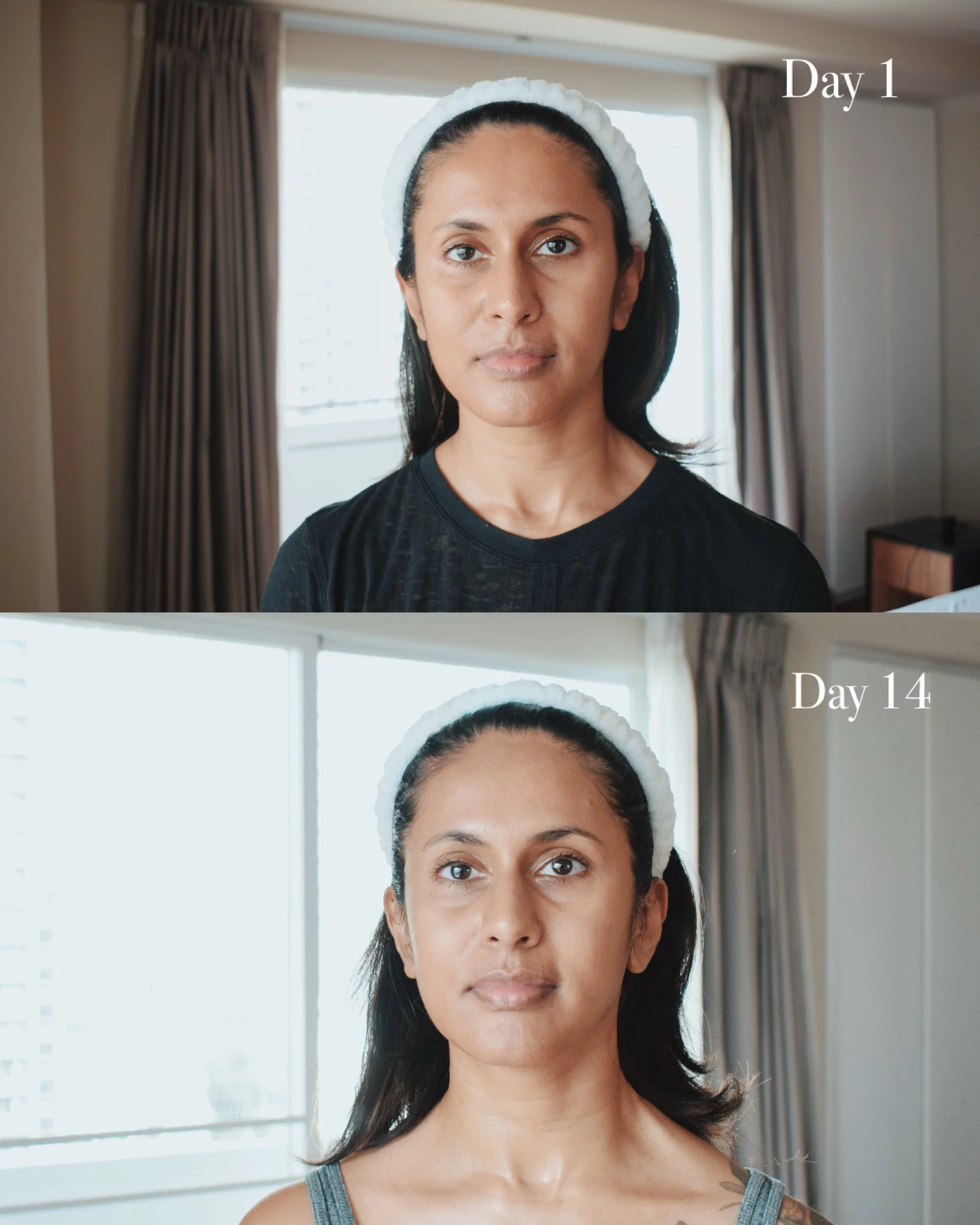 After 14 days, the results aren’t dramatic either (after all, 2 weeks isn’t a long time in skincare terms), but they’re definitely more noticeable.